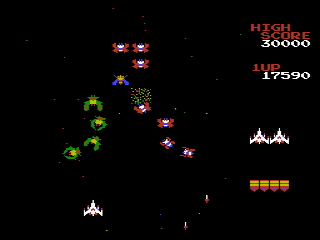 It is more chaotic but no less fun. Building on the formula established by its predecessor, Galaga introduces several new concepts to the fixed vertical shoot ’em up genre that made it a big arcade hit. There are new audio and graphical effects, enemies can transform, and there are bonus Challenging Stages.